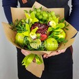 Пионы, розы и эустомы в коробке