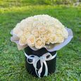 Белые и розовые розы в коробке