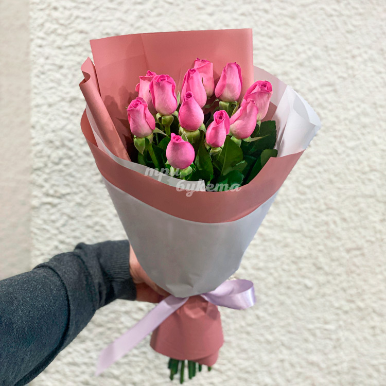 - Розовые розы, 11 шт.
