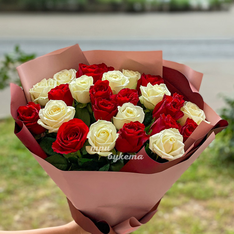 Букет из 25 красных и белых роз