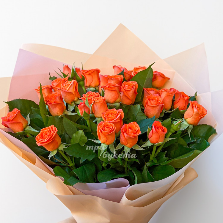 - Оранжевые кустовые розы, 7 шт.