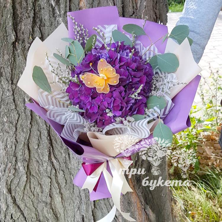 Букет из гортензий и эвкалипта
