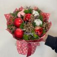 Хвойная композиция с бордовыми игрушками