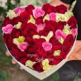 Коробка-сердце красных роз с фрезиями