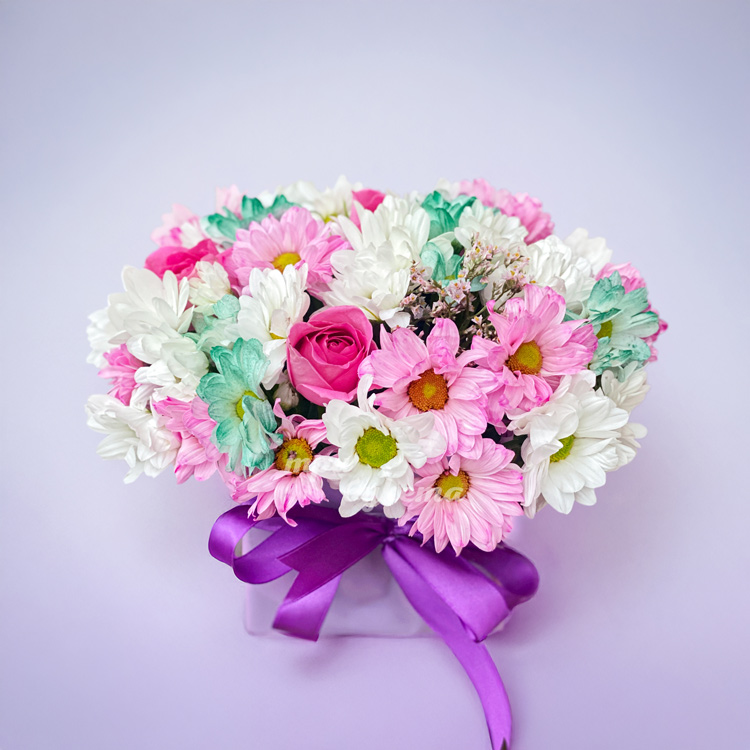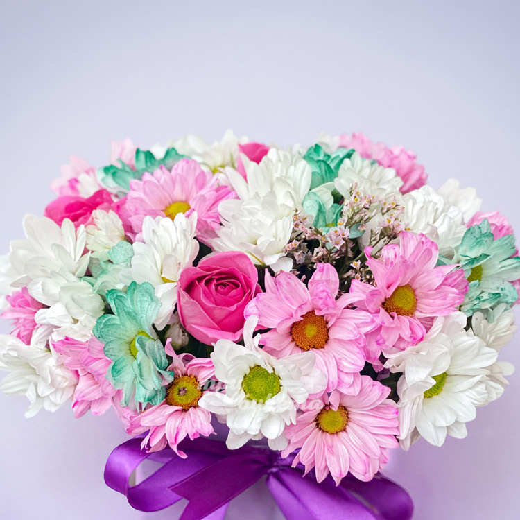 Коробочка разноцветных хризантем