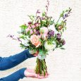 Корзина белых и розовых тюльпанов