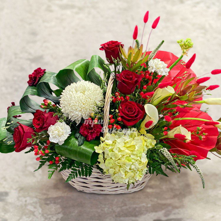 Корзина цветов с дизайнерским оформлением