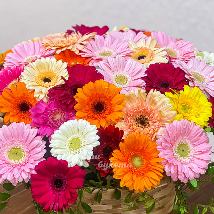 Корзина разноцветных гербер с фисташкой