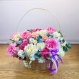 Корзина розовых куст. роз с гипсофилой