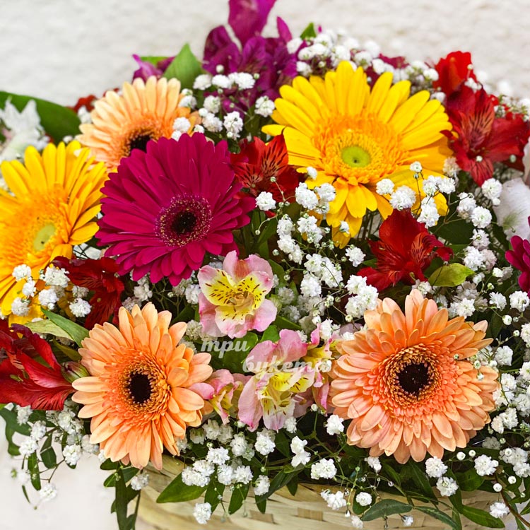 Корзина разноцветных гербер
