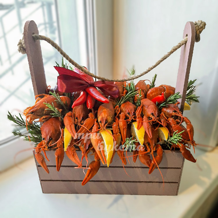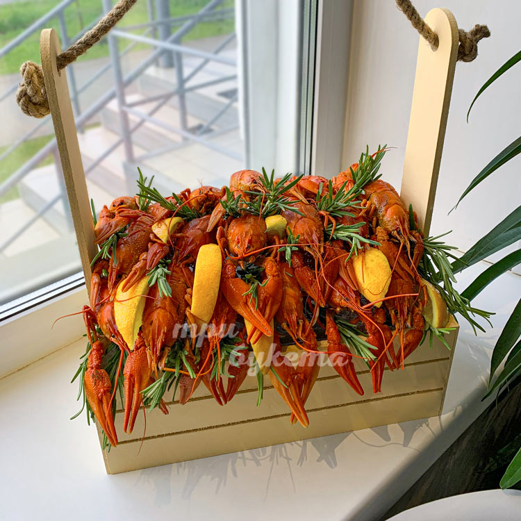 Раки и лимон в ящике