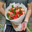 Розовый букет из клубники в шоколаде