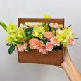 Розы и гвоздика в ящичке